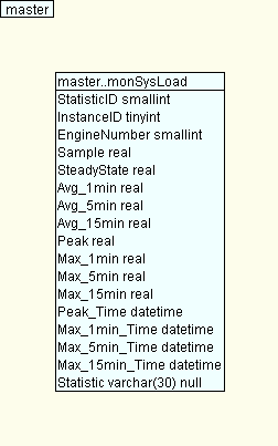 1 create table monSysLoad(-- 0 Rows, Data: 2 KB, Index: 0 B