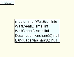 | master | monWaitEventInfo | ![]() | 31 Aug 14 | Joins Schema ColumnUsage Queries Dependencies |