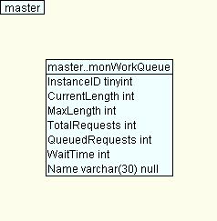 1 create table monWorkQueue(-- 0 Rows, Data: 2 KB, Index: 0 B 2 InstanceID tinyint not null, 3 CurrentLength int not null, 4 MaxLength int not null, 5 TotalRequests int not null, 6 QueuedRequests int not null, 7 WaitTime int not null, 8 Name varchar(30) null 9 ) 10 11 Grant Select on monWorkQueue to public 12