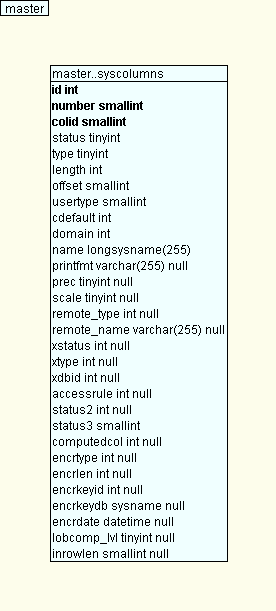 | syscolumns.csyscolumns unique clustered(id, number, colid) | 15 |