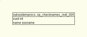 | sybsystemprocs | sp_checknames_rset_005 | 01 Jan 70 | Joins Schema ColumnUsage Queries Dependencies |