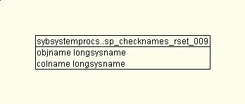 | sybsystemprocs | sp_checknames_rset_009 | 01 Jan 70 | Joins Schema ColumnUsage Queries Dependencies |