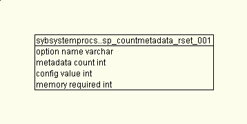 | sybsystemprocs | sp_countmetadata_rset_001 | 01 Jan 70 | Joins Schema ColumnUsage Queries Dependencies |
