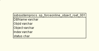 1 create table sp_forceonline_object_rset_001(-- 0 Rows, Data: 0 B, Index: 0 B 2 DBName varchar(30) not null, 3 Objid varchar(12) not null, 4 Object varchar(15) not null, 5 [Index] varchar(4) not null, 6 status char(- 1) not null 7 ) 8