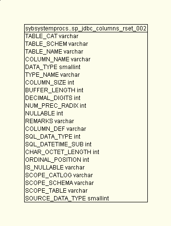 1 create table sp_jdbc_columns_rset_002(-- 0 Rows, Data: 0 B, Index: 0 B