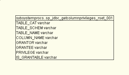 | sybsystemprocs | sp_jdbc_getcolumnprivileges_rset_001 | 01 Jan 70 | Joins Schema ColumnUsage Queries Dependencies |