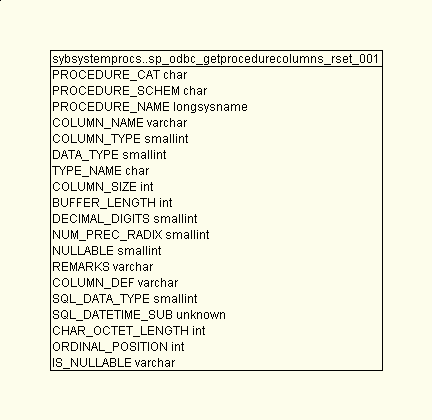 1 create table sp_odbc_getprocedurecolumns_rset_001(-- 0 Rows, Data: 0 B, Index: 0 B