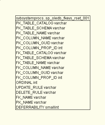 1 create table sp_oledb_fkeys_rset_001(-- 0 Rows, Data: 0 B, Index: 0 B