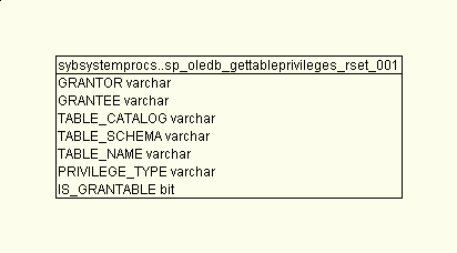 | sybsystemprocs | sp_oledb_gettableprivileges_rset_001 | 01 Jan 70 | Joins Schema ColumnUsage Queries Dependencies |