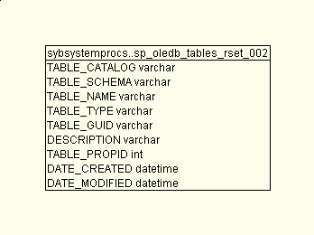 | sybsystemprocs | sp_oledb_tables_rset_002 | 01 Jan 70 | Joins Schema ColumnUsage Queries Dependencies |