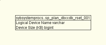 1 create table sp_plan_dbccdb_rset_001(-- 0 Rows, Data: 0 B, Index: 0 B 2 [Logical Device Name] varchar(255) not null, 3 [Device Size (KB)] bigint not null 4 ) 5