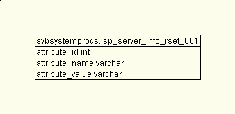 | sybsystemprocs | sp_server_info_rset_001 | 01 Jan 70 | Joins Schema ColumnUsage Queries Dependencies |