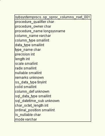 1 create table sp_sproc_columns_rset_001(-- 0 Rows, Data: 0 B, Index: 0 B