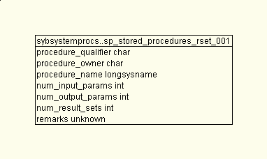 | sybsystemprocs | sp_stored_procedures_rset_001 | 01 Jan 70 | Joins Schema ColumnUsage Queries Dependencies |
