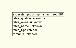 | sybsystemprocs | sp_tables_rset_001 | 01 Jan 70 | Joins Schema ColumnUsage Queries Dependencies |