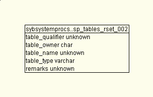 | sybsystemprocs | sp_tables_rset_002 | 01 Jan 70 | Joins Schema ColumnUsage Queries Dependencies |