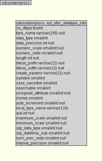 | ALIASES USED for sybsystemprocs..spt_jdbc_datatype_info | |||