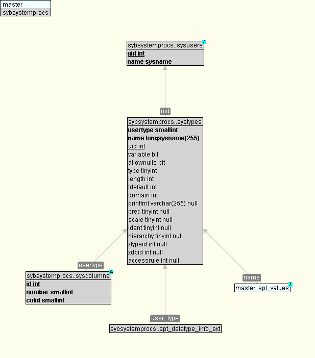 1 create table systypes(-- 49 Rows, Data: 4 KB, Index: 16 KB